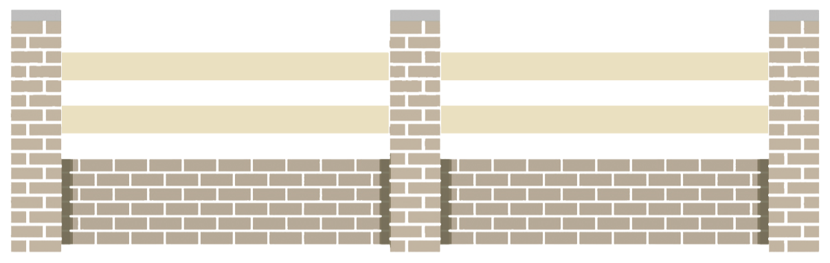 Cordouan, clôture PVC avec 2 lames lisses horizontales, d’une section de 120 x 28 mm.