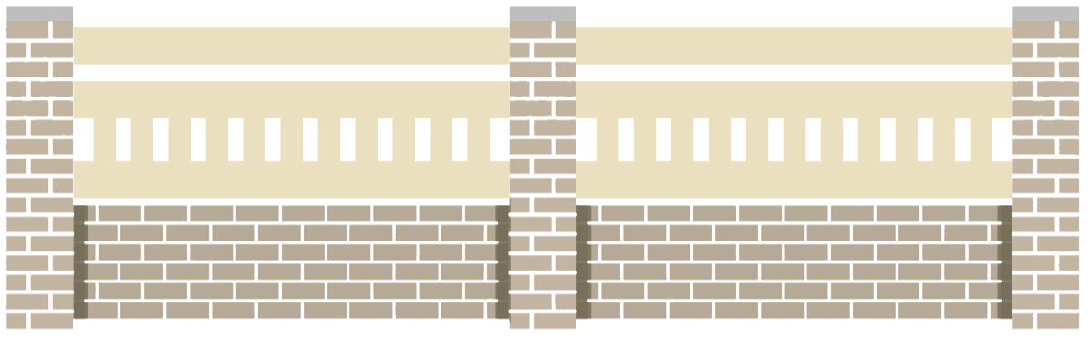 Gaou, clôture PVC avec lames ajourées verticales de 70 x 20 mm. Elle est composée d’une double traverse de 120 x 28 mm.