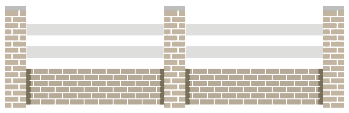 Bruzzi, clôture aluminium avec 2 lames lisses horizontales, d’une section de 94 x 49 mm.
