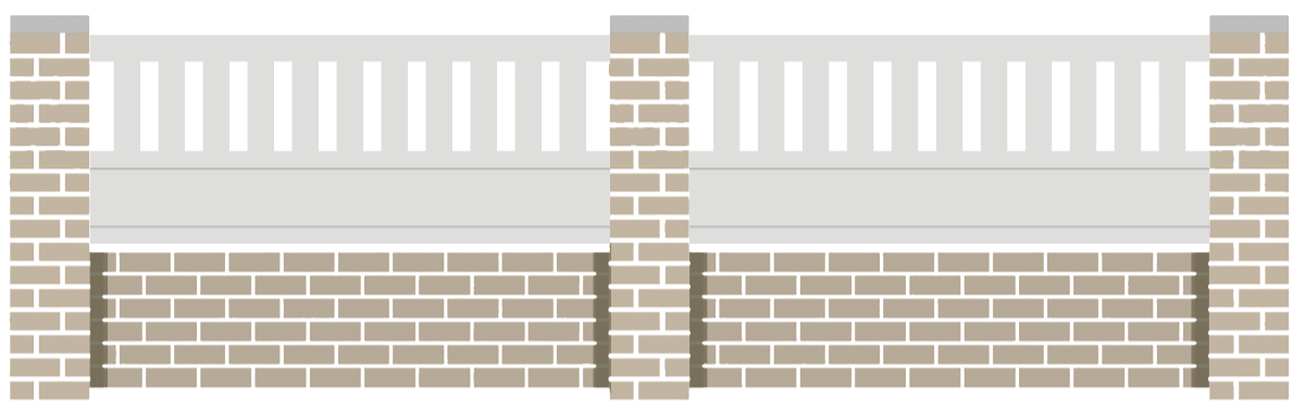 Fajou, clôture aluminium avec lames ajourées verticales de 92 x 25 mm et soubassement plein avec cadre de 25 mm.