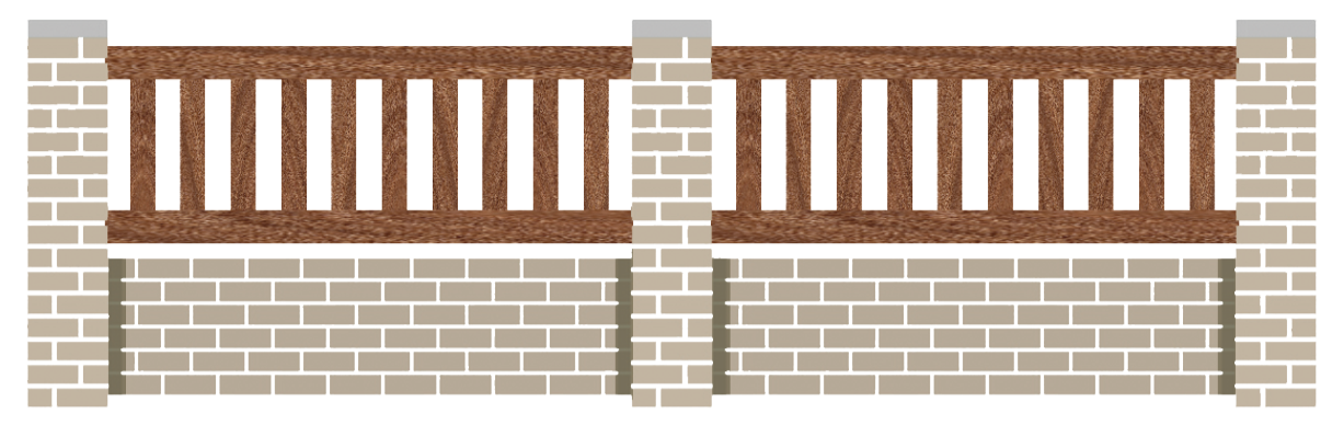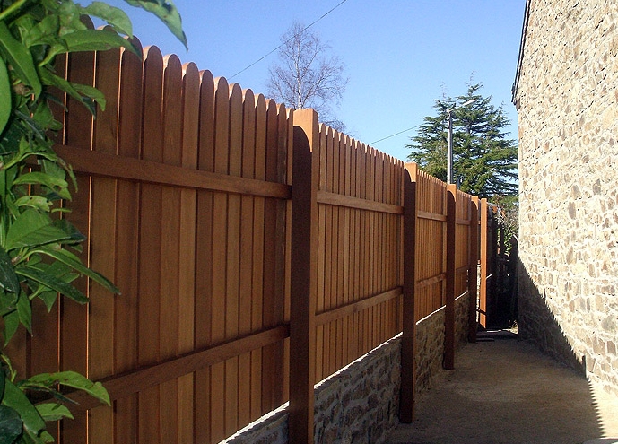 Venan, clôture bois avec lames verticales de 90 x 22 mm et traverse de 120 x 45 mm.