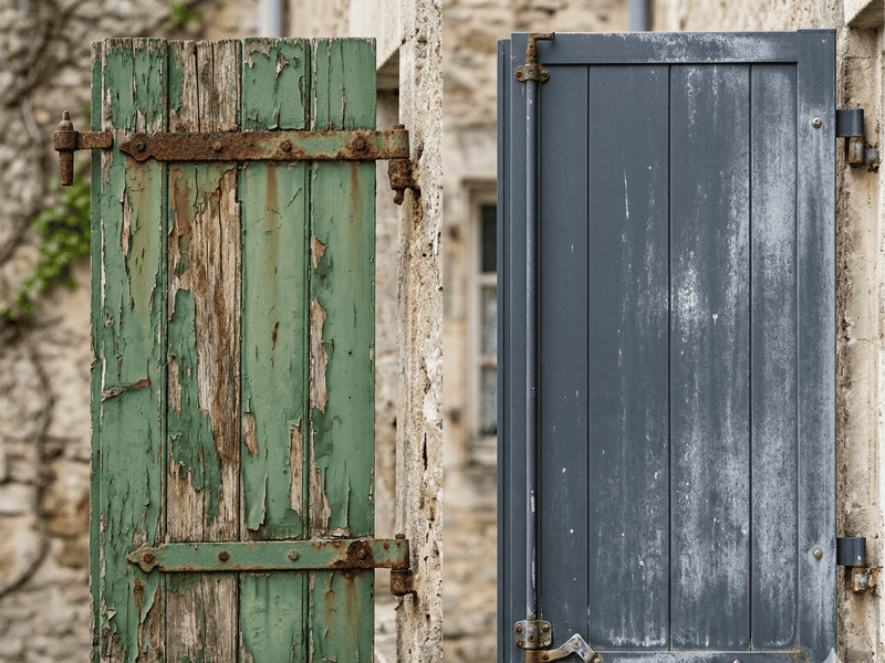 Lames gondolées, teinte passée, ou apparition de fissures fines : autant d’indices que la protection de surface de vos volets s'est affaiblie. Chaque matériau a son langage et ses propres faiblesses face au temps :