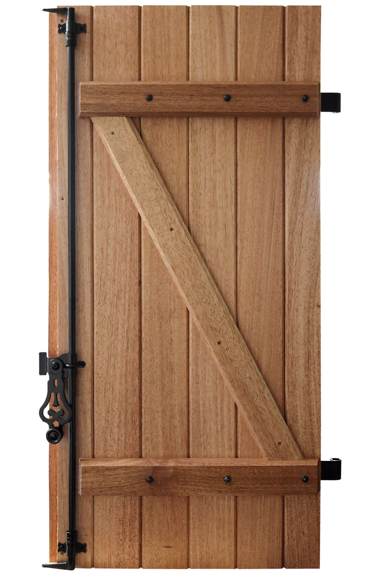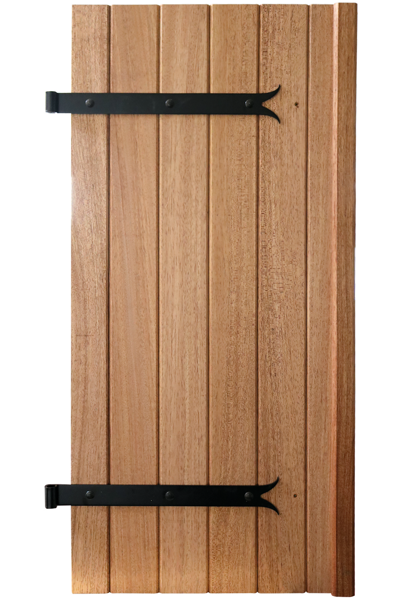 Avec ses lames verticales de 27 mm, ce volet battant en bois exotique rouge respecte les codes du volet traditionnel tout en apportant une solidité remarquable. Son essence dense et homogène, dépourvue de nœuds, lui confère une résistance naturelle supérieure aux agressions climatiques et une longévité renforcée.
